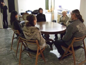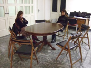 I am sitting at a desk in the office of the City Gallery in Labin, keeping silent. Curators of the exhibition and visitors are also enjoined to silence. The performance is imagined as a kind of therapy session for the curators, who in the same space had many working sessions and spent hours and hours in intellect debates during curator workshops that went on all year, and also as a call for temporary community in silence for all visitors.