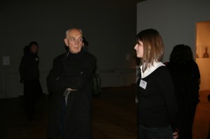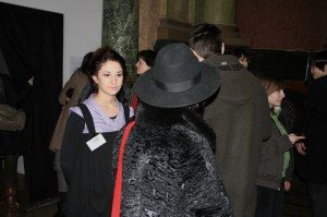 At the opening of a big collective exhibition, five performers played museum guards. Unlike real guards, who try to be unobtrusive and discreet, these guards followed the visitors, came too close to them and watched them indiscreetly.