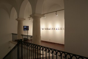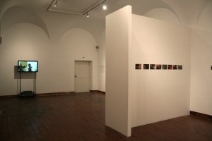 In the reception area of the gallery, before setting out to look at the exhibition, the visitors are asked by a voice from the loudspeakers to sit and wait a little time. The voice of the announcer asks then the visitors to proceed to the exhibition space.