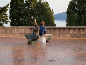 One more site-specific work is the Audio Guide to the Terrace which inducts the visitor into an unconventional perception of the space. Instructing him to observe the architecture, the sea and the horizon that are accessible to the gaze in a specific way, to sit down in a certain place, to imitate the posture of the Meštrović figure placed there, the artist enables new visions to be opened up, the experience of the space to be enriched and enhanced.
