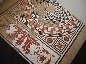 I had been working for seven days on reconstruction of partially preserved Roman mosaic from 2nd century. I used small colored paper squares (1x1cm) to fill in missing parts. However the reconstruction was temporary, not only because of impermanent and fragile material I used, but also because I didn’t fix paper squares to the floor.
